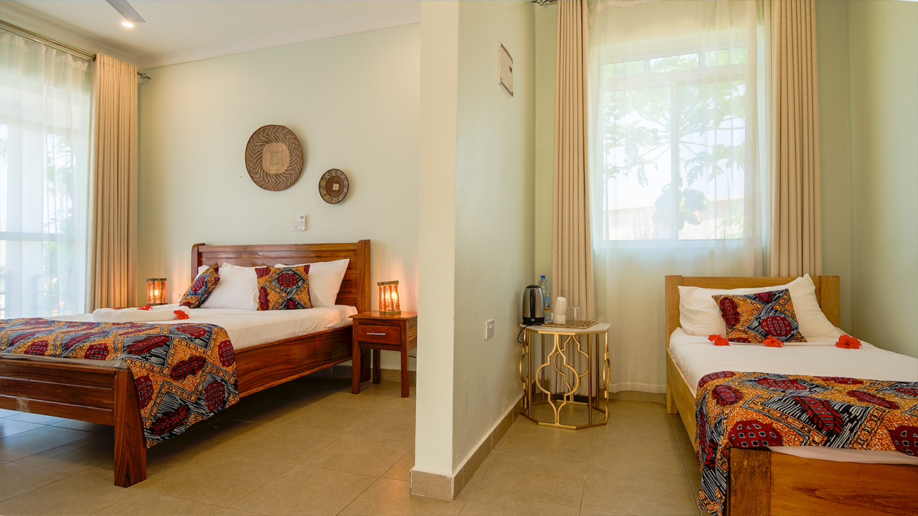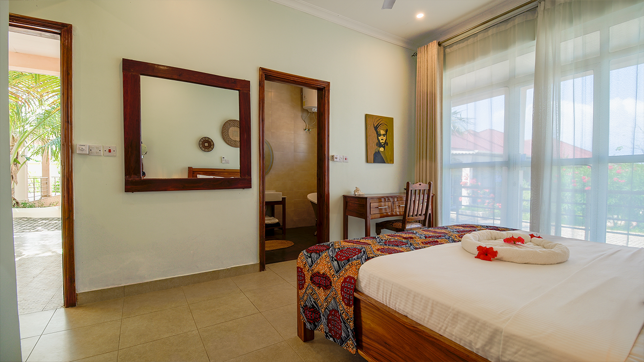 Experience comfort and tranquility with views over the pool and beyond to the ocean. This villa features a double bed and an additional single bed, perfect for a child or extra guest. Step outside to your private terrace and enjoy the relaxing scenery, or unwind inside in a bright bathroom with both a shower and a bathtub. Thoughtful touches such as coffee and tea facilities make your stay even more comfortable.